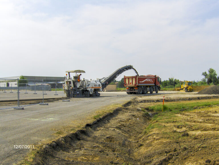 Eseguiamo scavi e movimentazione terra per realizzare o ripristinare piazzali pubblici e privati, aree cortilive, pavimentazioni e rampe industriali e residenziali. Realizziamo manti stradali, parcheggi, piazzali e aree di cemento armato, asfalto, autobloccante, ghiaia, palladiana e altre pietre. Realizziamo cordoli perimetrali, muretti e recinzioni, pozzetti, caditoie, fosse biologiche, degrassatori, nonché i collegamenti alle reti fognarie pubbliche e alle linee elettriche.