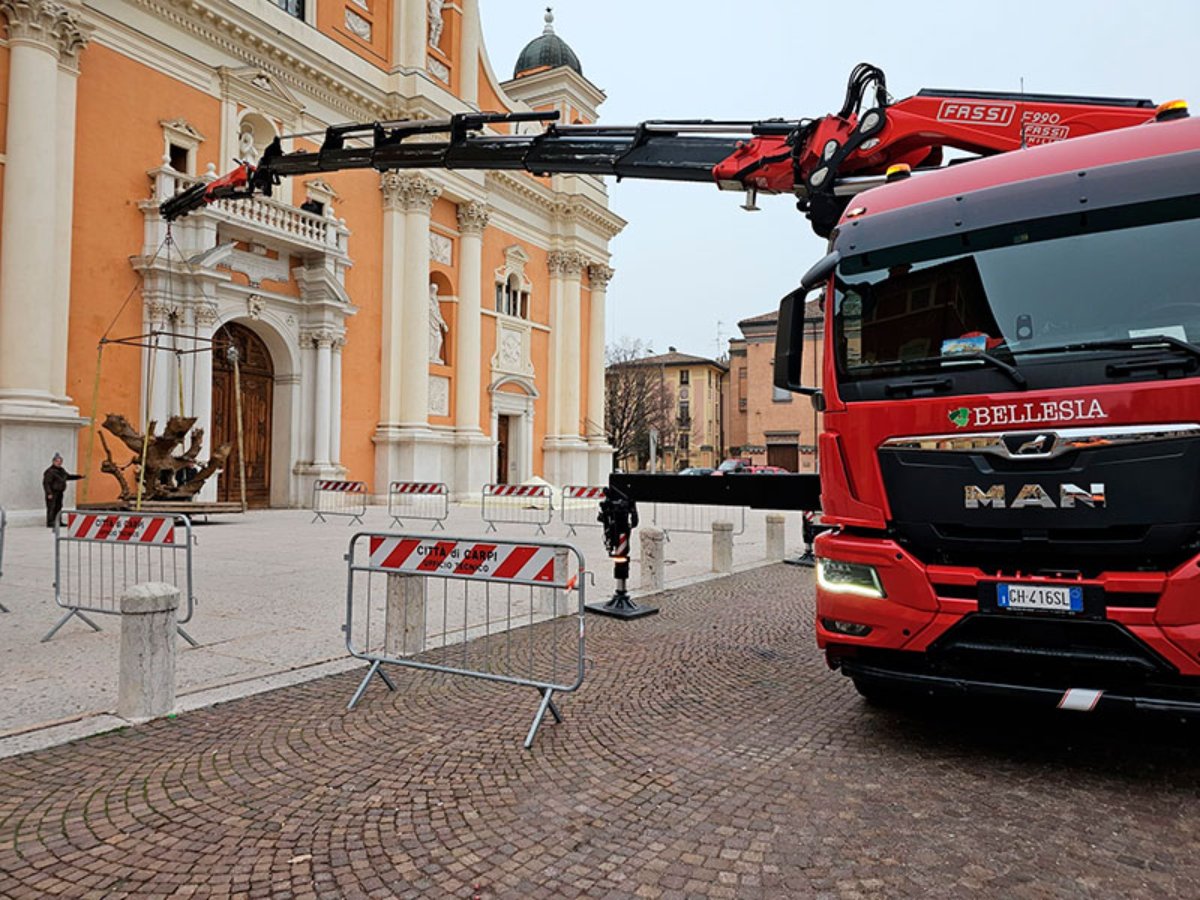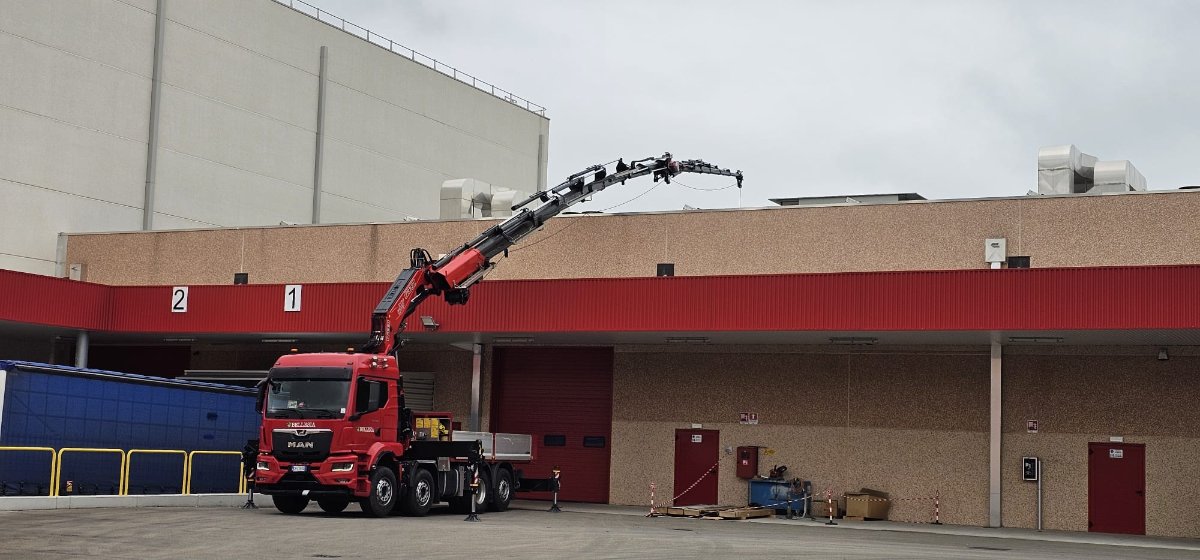 L’ultima gru acquistata ha un’altezza di sollevamento di 35 m: nella sua massima estensione orizzontale ha una capacità di 970 kg che diventa di 670 kg in verticale; mentre arriva ad alzare fino a 12 t a braccio quasi chiuso.