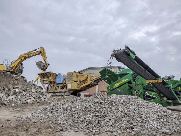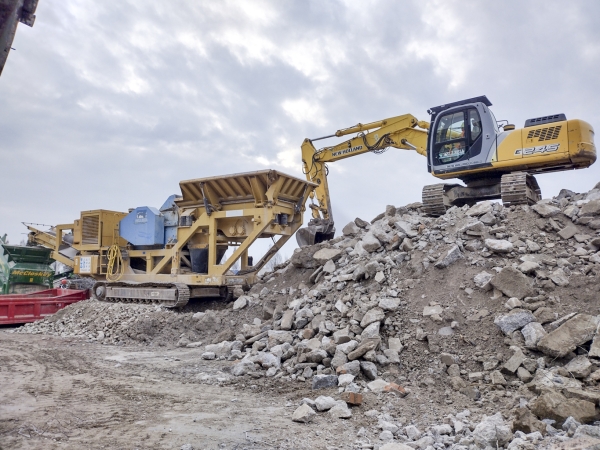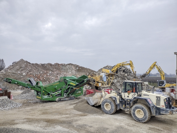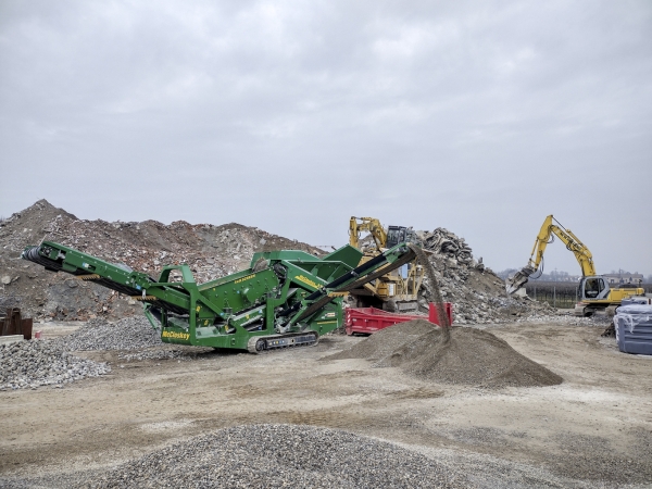 Questi materiali di risulta, già separati in sede di cantiere, vengono caricati con l’escavatore prima nel frantumatore e successivamente nel vagliatore che li setaccia, per ricavare 3 diverse granulometrie: grossa, media e fine.