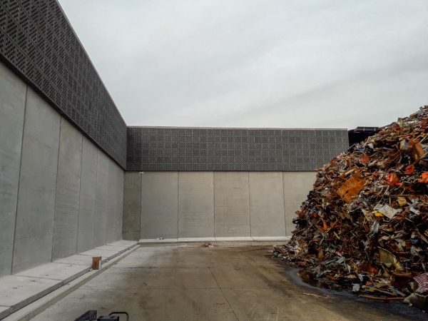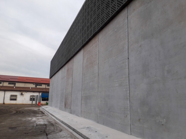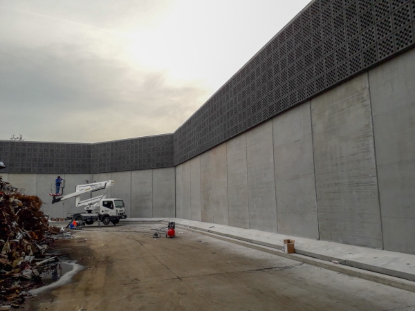 Una delle nostre squadre ha realizzato i basamenti in cemento armato per un’imponente barriera antirumore. La struttura è stata progettata per un’azienda di Carpi (MO) che recupera rottami metallici. L’area esterna è molto estesa ed è riservata alla movimentazione e ai depositi dei materiali. Per far fronte all’inquinamento acustico che ne deriva, è stato progettato un “muro perimetrale” alto ben 8 metri e lungo 80 che arriva a delimitare anche alcuni capannoni preesistenti.