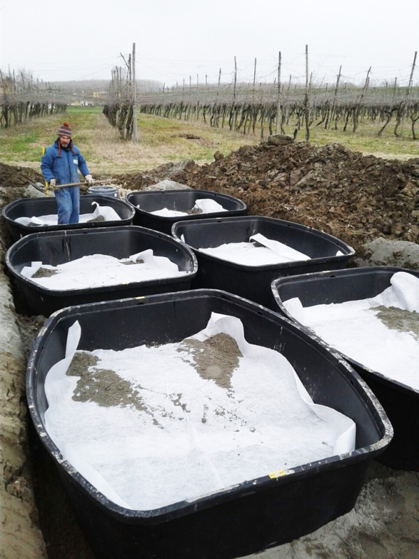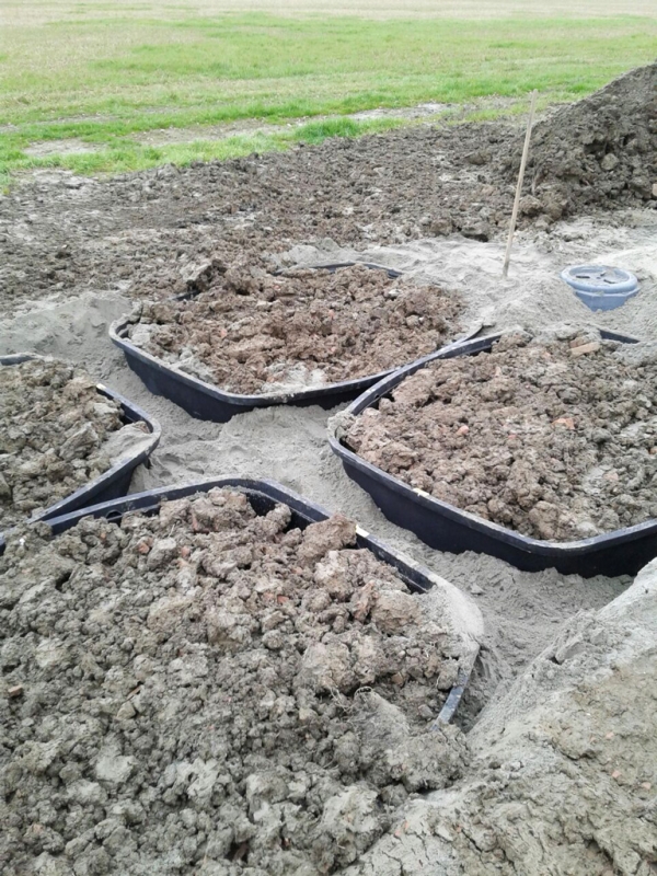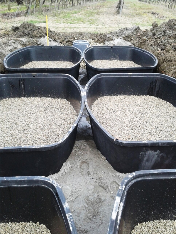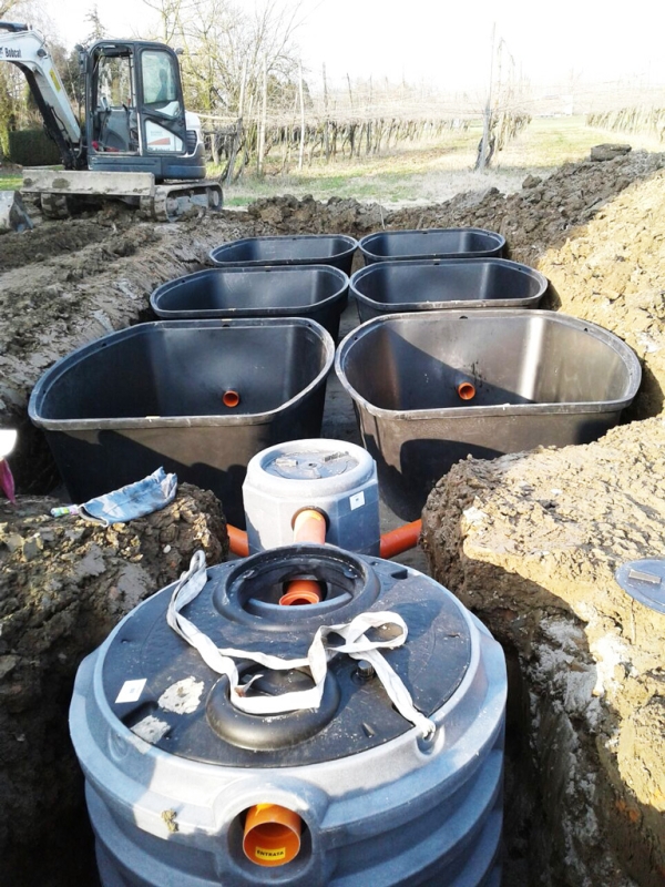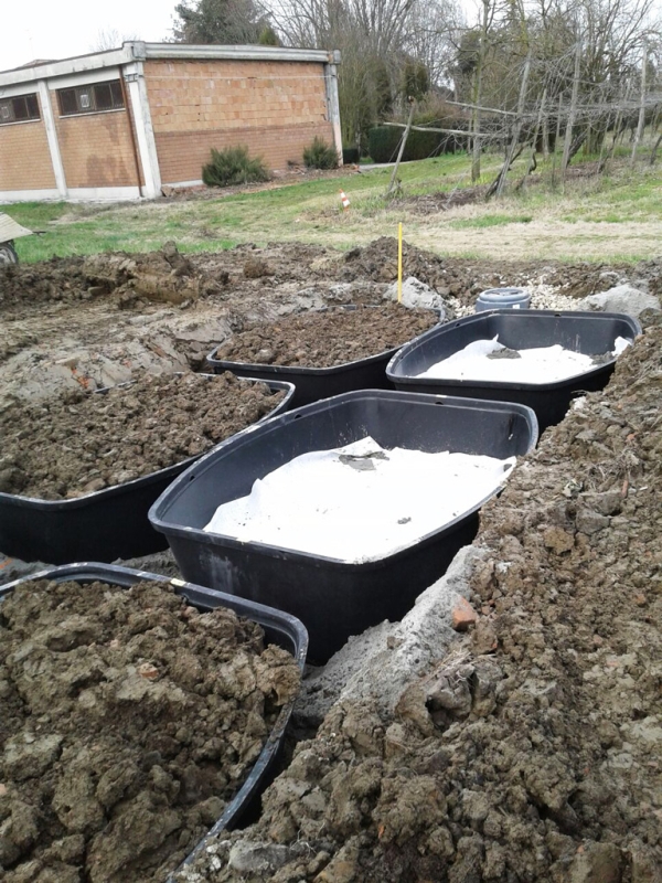 Bellesia ha eseguito tutti gli scavi e la movimentazione della terra per la messa in posa dell’impianto. Un intervento all’apparenza semplice, ma che richiede adeguate competenze, precisione e l’impiego di diversi mezzi. Dopo aver realizzato lo scavo, abbiamo posato la vasca IMHOFF che opera il primo filtraggio. Successivamente abbiamo posizionato il pozzetto di raccordo ingresso per convogliare le acque nelle due file di vasche. Dopo la sistemazione di tutti i componenti, abbiamo riempito di ghiaia le vasche, distribuendola uniformemente. Abbiamo steso il tessuto non tessuto e colmato di terra ciascuna vasca. Infine abbiamo riempito le intercapedini e livellato il terreno prima che il vivaista mettesse a dimora le piante di bambù.