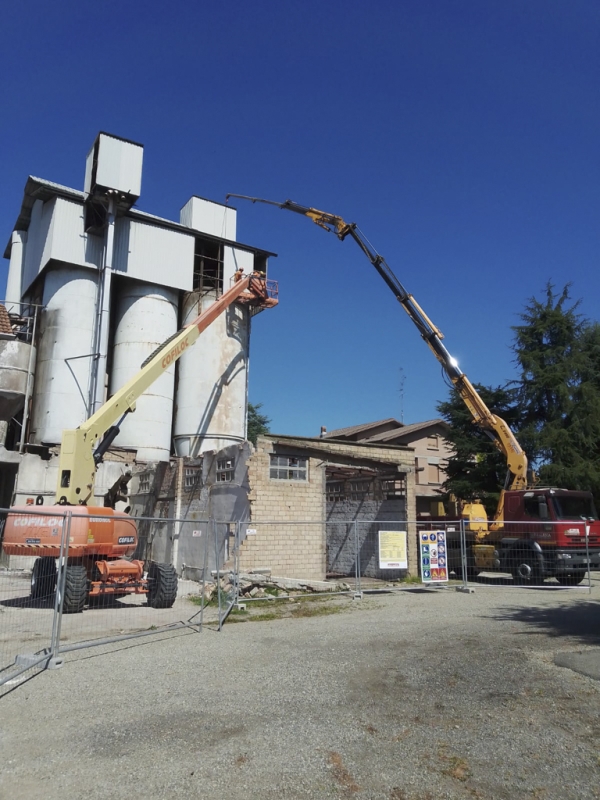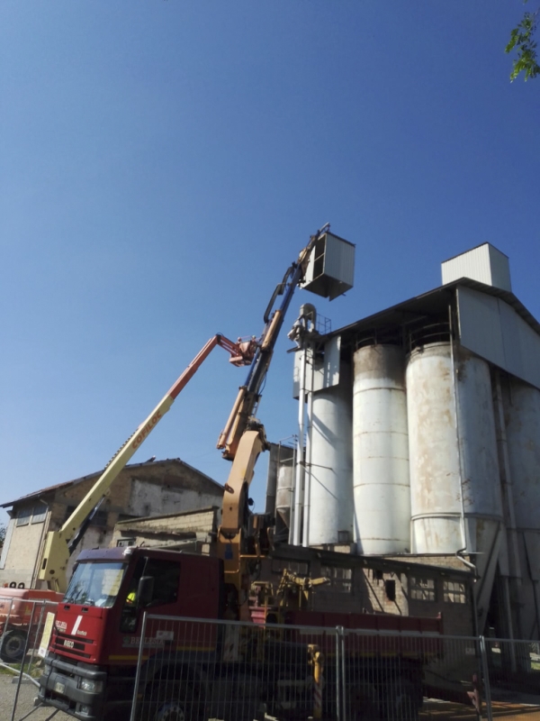 Sette i silos facenti parte dell’allevamento: con l’ausilio di gru e piattaforme, le nostre squadre hanno smantellato tutte le lamiere perimetrali e di copertura, poi si è proceduto con la rimozione delle cisterne vere e proprie.