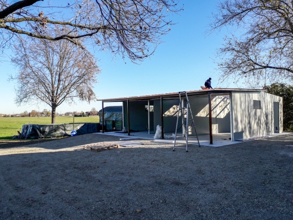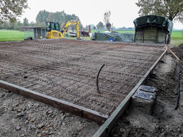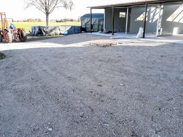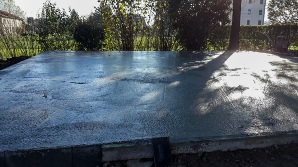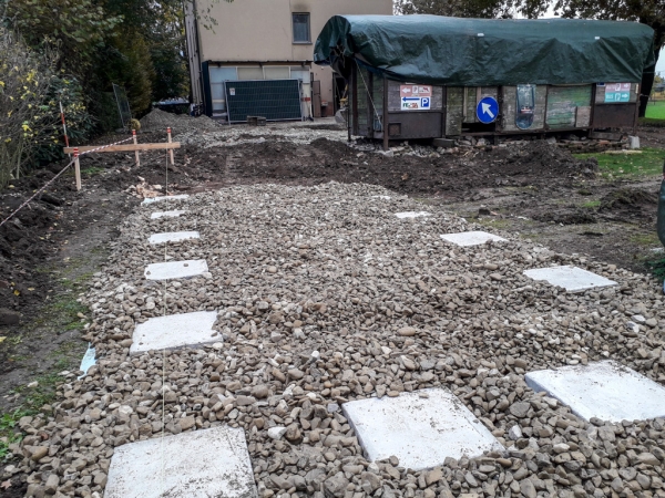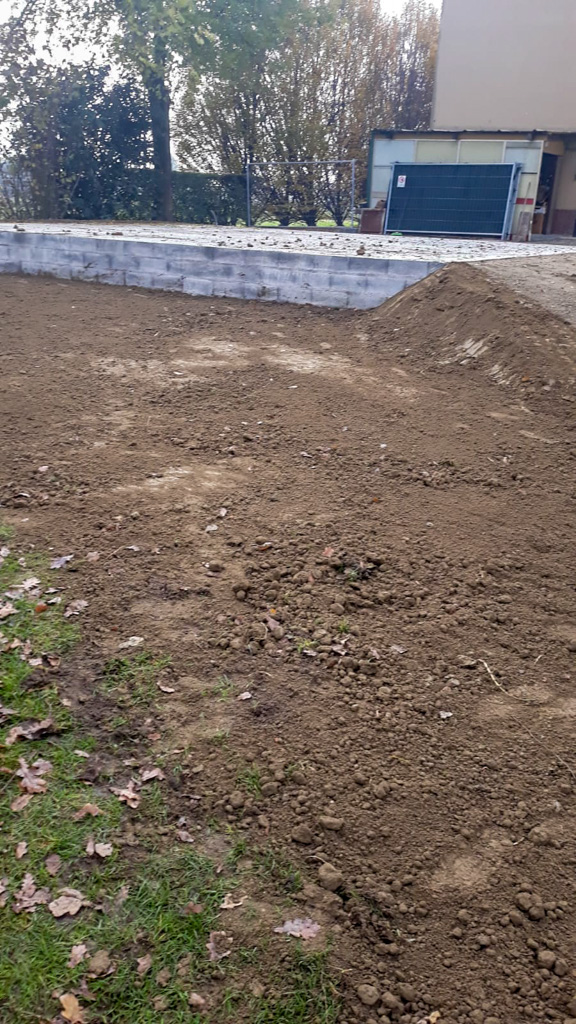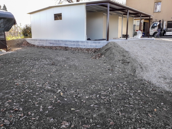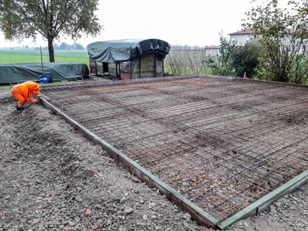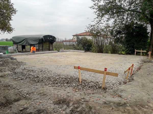 Messo in sicurezza il reperto industriale, abbiamo potuto livellare e preparare il terreno per realizzare la platea rialzata su cui costruire l’edificio moderno con tre posti auto.
