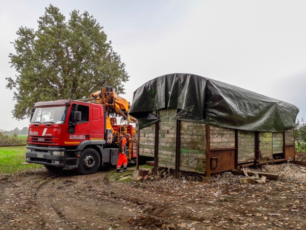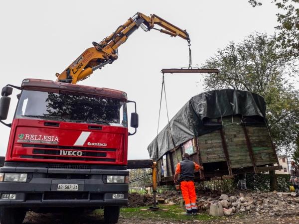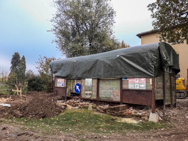 Un cantiere singolare e stimolante poiché ha richiesto una molteplicità d’interventi tra cui lo spostamento di un vagone merci degli anni quaranta del Novecento.