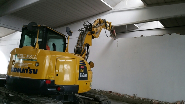 Bellesia Scavi ha realizzato la demolizione interna di pareti di un edificio commerciale di 5000 mq della provincia di Modena, utilizzando escavatori gommati e cingolati con pattini in gomma per tutelare e mantenere integra la pavimentazione esistente. Sono stati utilizzati escavatori Komatsu pc 118 e pv 118 particolarmente adatti per ambienti stretti. Il materiale di risulta è stato poi trasportato persso il nostro magazzino di stoccaggio di migliarina di Carpi.