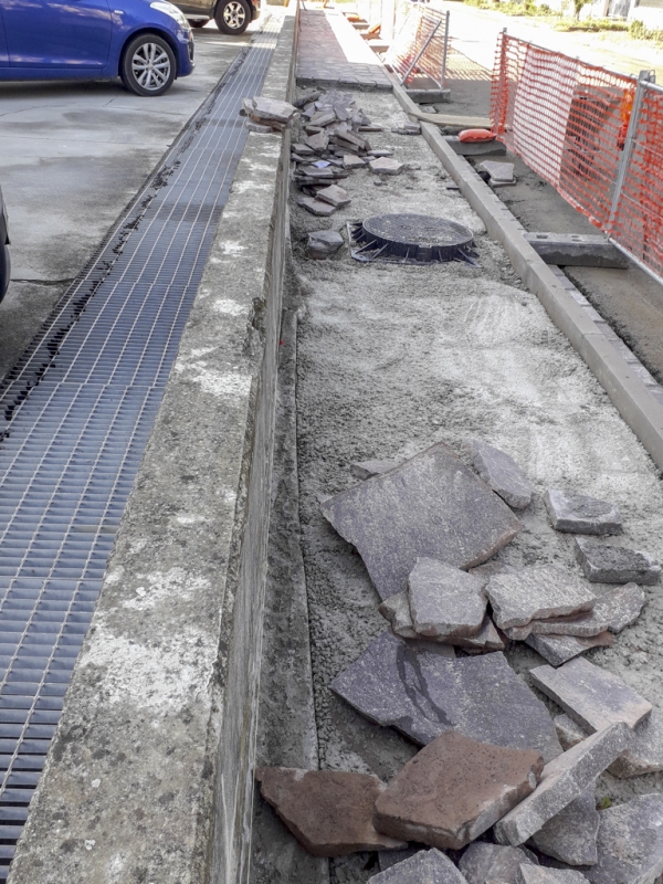 Demolizione marciapiede e preparazione piano di posa: 5 giorni