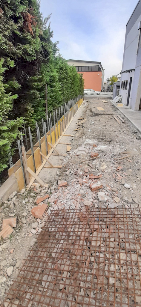 L’aumento dell’attività produttiva di un’impresa di Rio Saliceto ha richiesto la costruzione di un nuovo edificio a fianco di quello esistente e la conseguente sistemazione di tutta l’area ghiaiata esterna. Dopo averla sgombrata dai materiali di risulta dell’intervento edilizio, abbiamo rifatto il muretto di confine e abbiamo steso il sottofondo per la posa dell’autobloccante. Questa pavimentazione è stata scelta per la fuga larga che agevola il deflusso dell’acqua facendo rispettare l’indice di permeabilità.