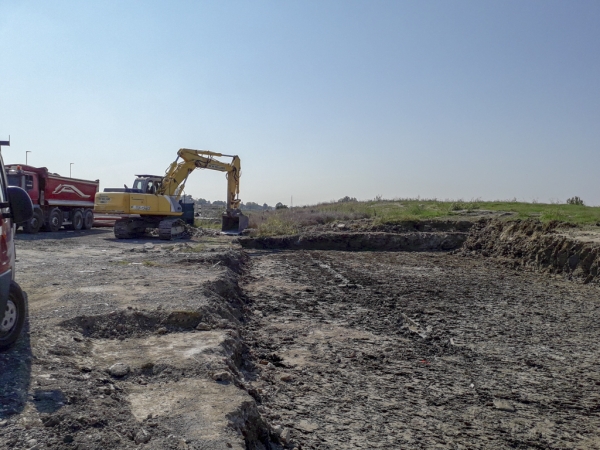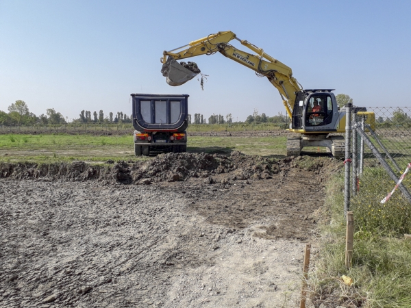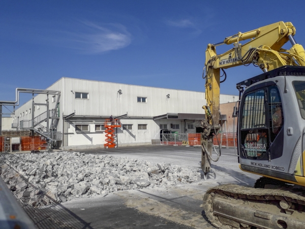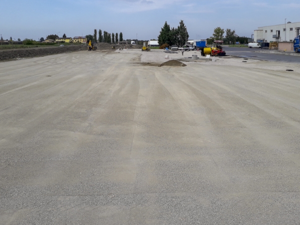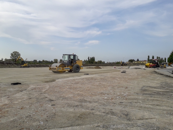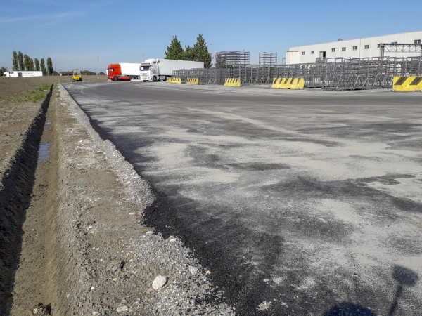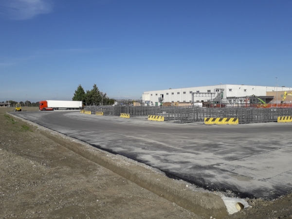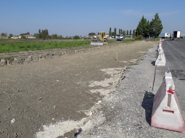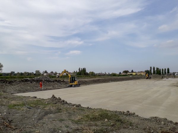 Il cantiere è iniziato con lo sbancamento dell’intera area, dopo il quale abbiamo steso un primo strato di sabbia, un altro di riciclato misto ed un ultimo strato di compattato 0/30, tutti materiali provenienti dal nostro deposito di inerti di Migliarina di Carpi. Una volta rullata la superficie, un’altra ditta ha eseguito l’asfaltatura di completamento del piazzale che è diventato subito operativo!