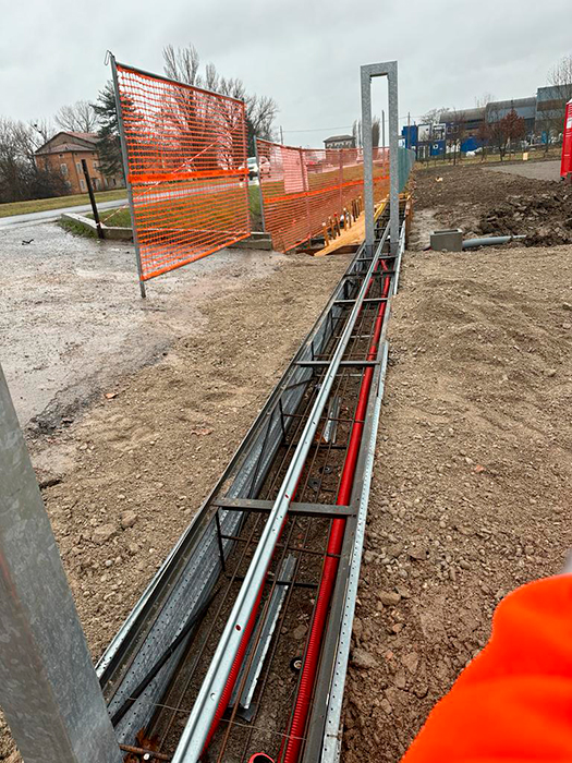 Per i servizi igienici che sorgeranno a lato del piazzale e un eventuale ristorante, abbiamo realizzato l’impianto idrico e la linea fognaria di 550 ml che da qui si dirige verso il canale di bonifica e, correndo parallelamente al canale, raggiunge via Bersana, attraversandola, e si collega alla fognatura pubblica presente in via Meloni di Santa Croce.