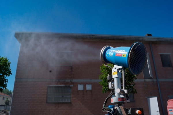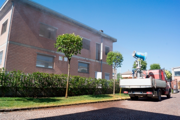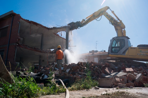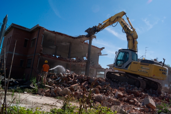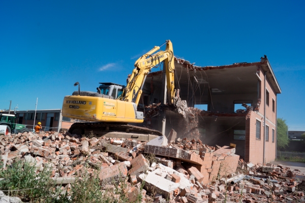 Entrambi i capannoni, rispettivamente di 300 e 700 mq, in cemento armato, sono stati demoliti impiegando un escavatore, una pinza frantumatrice, il cannone nebulizzatore per l’abbattimento delle polveri e il camion per il trasporto delle macerie al nostro centro di recupero. Infine abbiamo pulito le aree per eseguire in seguito le fondazioni per il nuovo edificio. L’intervento è durato due settimane lavorative.