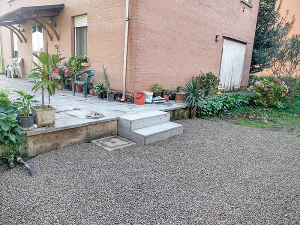 Definizione dei dettagli: abbiamo realizzato inoltre due gradini che conducono all’ingresso dell’abitazione, migliorando l’accesso e abbiamo completato il lavoro dell’area cortiliva con confini netti e puliti.