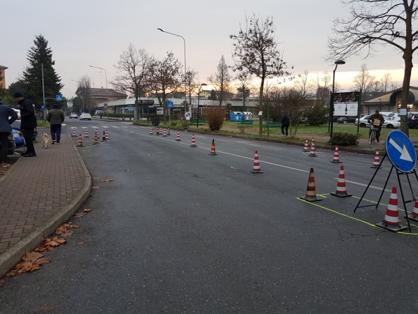 Il restringimento di carreggiata si è reso necessario per rallentare il traffico in entrata in centro storico, per la vicinanza a un polo scolastico e ad altri centri di aggregazione e commercio (chiesa e negozi). All’uscita dagli istituti, studenti e altri pedoni hanno necessità di attraversare questa via molto trafficata per distribuirsi verso altre zone urbane. Per far diminuire la velocità di scorrimento dei mezzi, le isole rappresentano lo strumento ideale, poiché restringono la carreggiata e mettono in maggior sicurezza i pedoni che attraversano usufruendo di un piano rialzato. D’obbligo naturalmente la segnaletica per la quale Bellesia detiene le autorizzazioni.