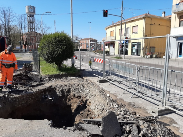 Dalle verifiche di sicurezza sono emersi dei cedimenti strutturali al cavo tombato di Linarola che entra a Novellara, attraversa l’area urbana e ne esce dirigendosi verso Reggiolo, per quasi 12 km. Il tombamento, avvenuto negli anni Settanta, presenta dei tratti ammalorati su cui siamo intervenuti, ricostruendo l’invaso a sezione circolare e sostituendo uno scarico e un pozzetto. L’intervento si è reso necessario per scongiurare i rischi idraulici determinati dalla riduzione della portata dell’acqua. All’ispezione, infatti, abbiamo trovato pietrame e cemento a ostruire il fondo: cedimenti della sommità e dei lati dell’invaso. I lavori commissionati del Consorzio di Bonifica dell’Emilia Centrale e dal Comune sono durati complessivamente 15 giorni e hanno incluso il rifacimento della superficie stradale.