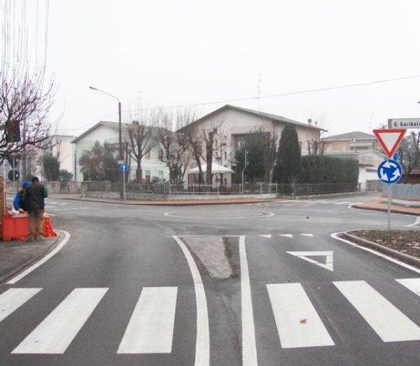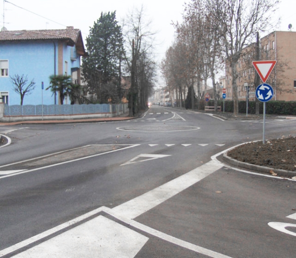Intervento di ripristino e sistemazione di rotonde e strade comunali, atte allo smistamento di 4 vie secondarie e l’inserimento dell’impianto d’lluminazione pubblica. L’intervento ha comportato l’intero sbancamento del manto stradale e il successivo ripristino e inserimento di scolo dell’acqua e impianto d’illuminazione.