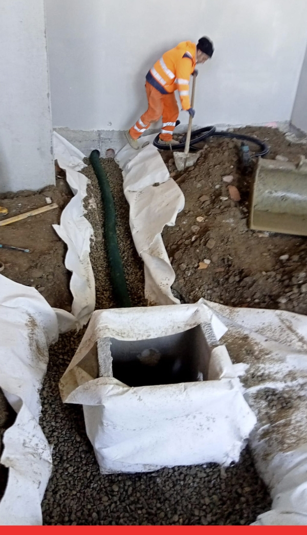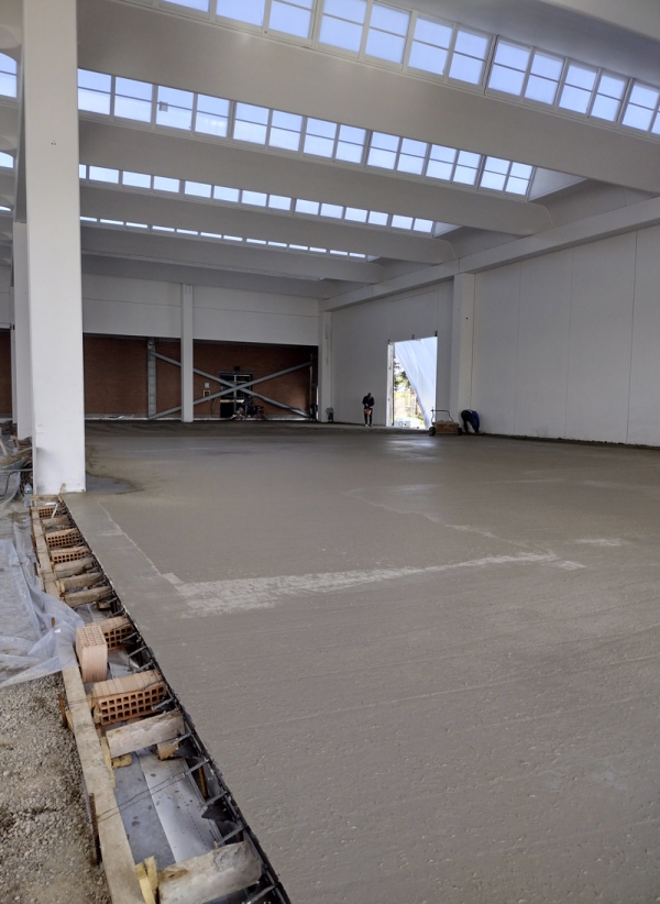 Nello spazio interno in fase di realizzazione, sono state eseguite tutte le operazioni preliminari necessarie alla preparazione della nuova pavimentazione in calcestruzzo armato.