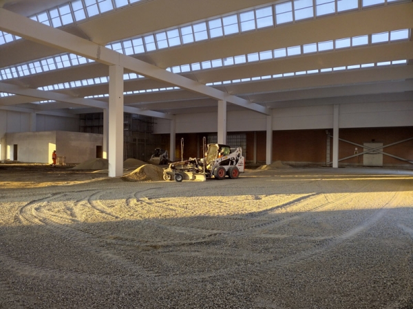 E’ stato aggiunto uno strato di compattato proveniente dal nostro magazzino, per la creazione di un piano di posa adeguato alla nuova pavimentazione industriale.